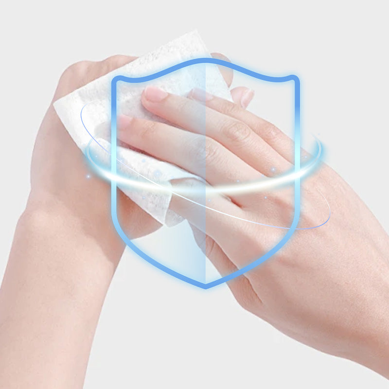 Materiale: Spunlace ikke-vevd stoff, Edi renset vann, decylglukosid, polysorbat 20 protease, allantoin, propylenglykol, fenoksyetanol, etc.