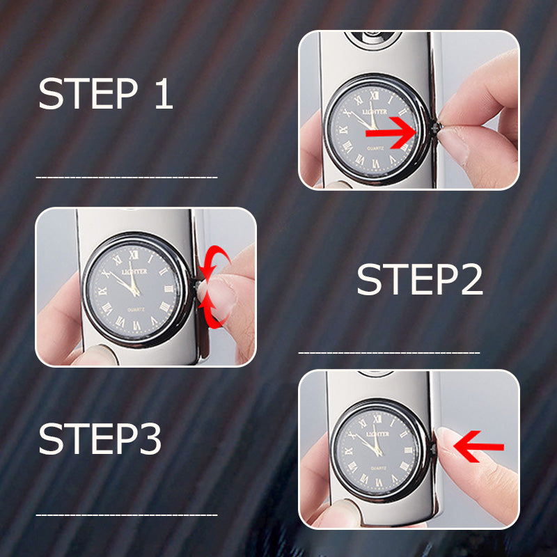 UNIK 2-i-1-klokke og lighter: Denne innovative designen kombinerer et fullt funksjonelt armbåndsur med en innebygd vindtett butanlighter, noe som gir både bekvemmelighet og et dristig motestatement i ett og samme tilbehør.