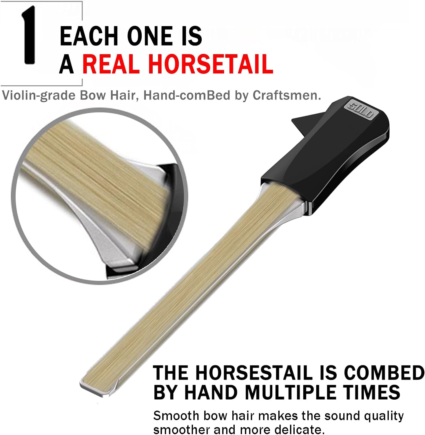 Das Bogenhaar besteht aus echtem Pferdeschwanzmaterial und wurde von professionellen Handwerkern viele Male von Hand glatt gekämmt. Es hat eine gute Zähigkeit und ist nicht leicht zu brechen, und der Ton ist reich und zart.
