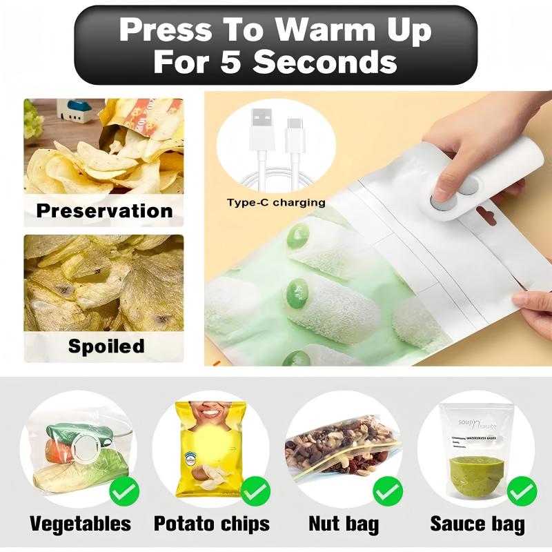 Pakken inneholder: 1*Snack Bag Heat Sealer + 1*ladekabel