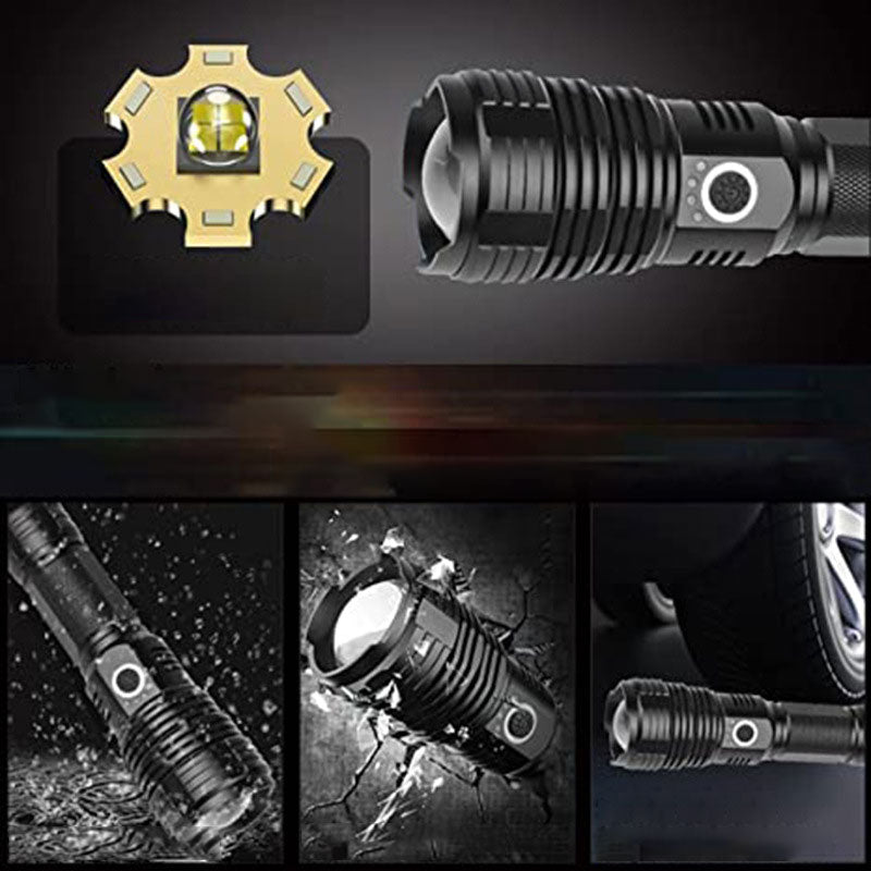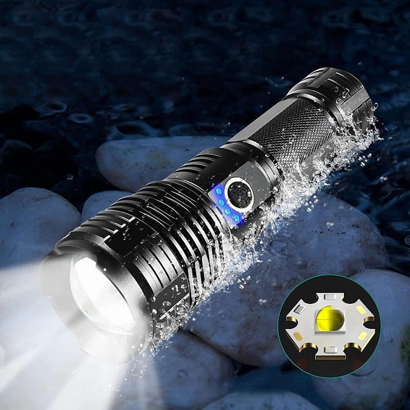 Sett med superlyse, vanntette, oppladbare lommelykter med zoom