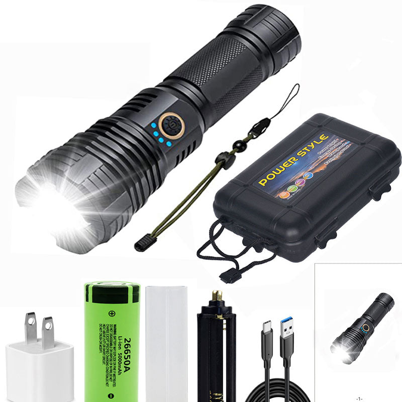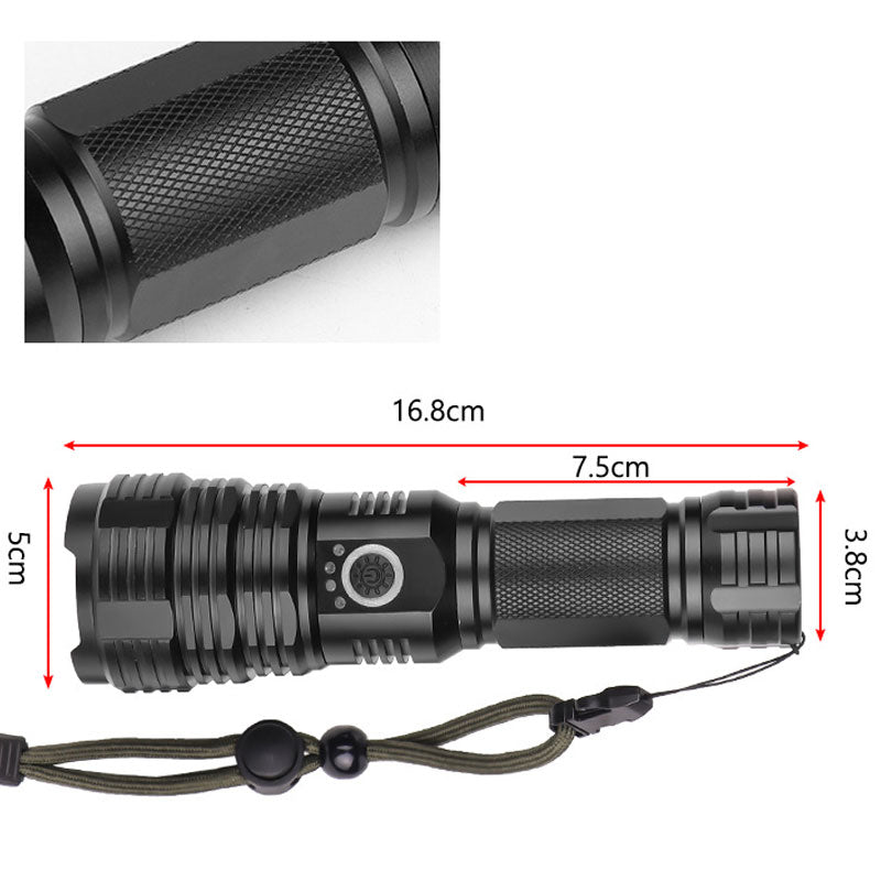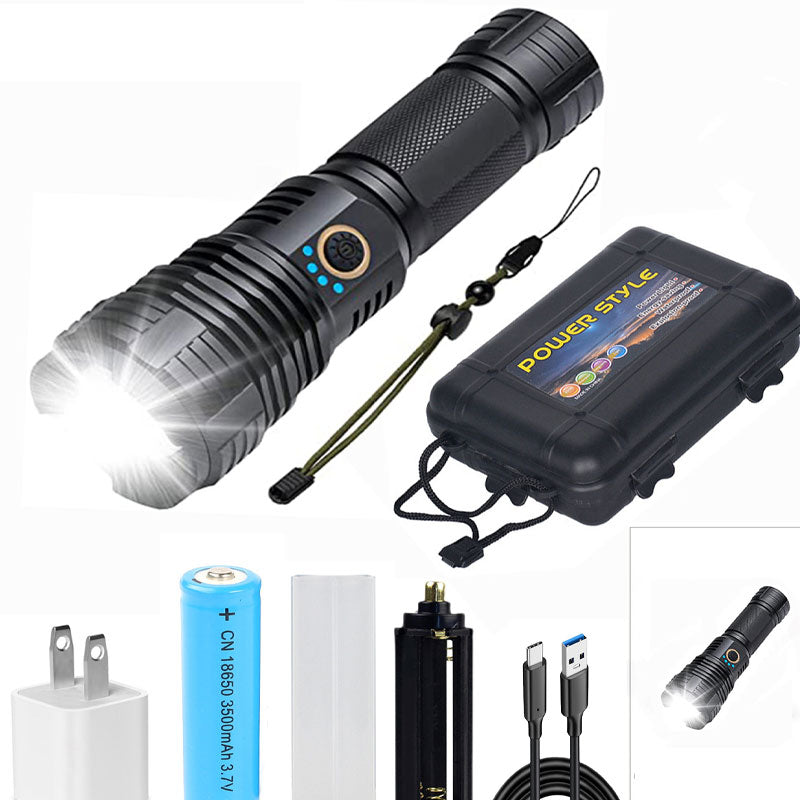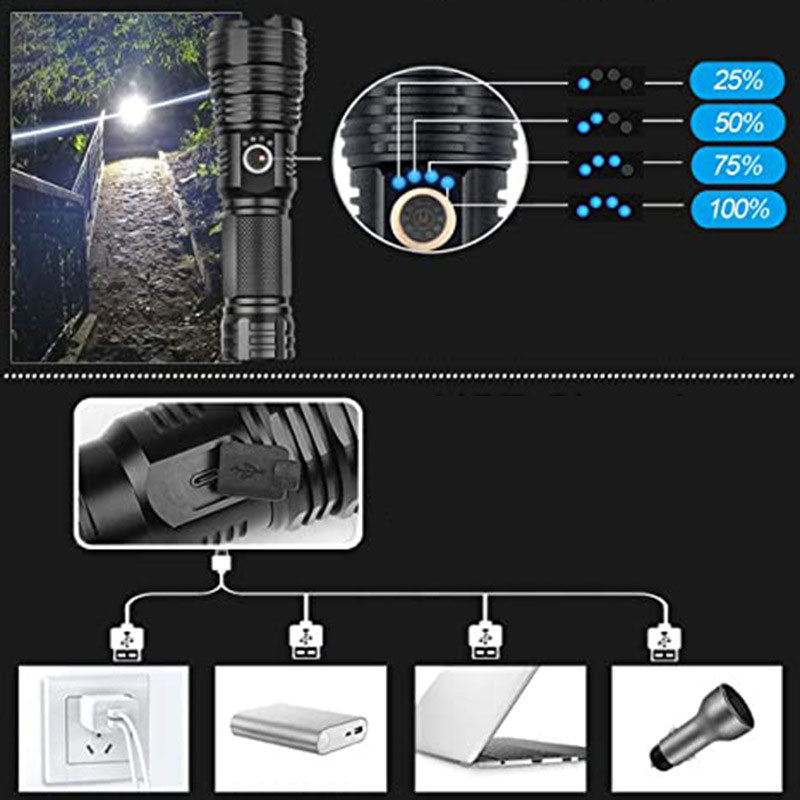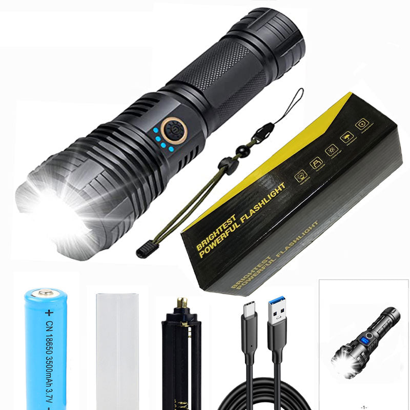 Pakken inneholder: 1* sett med superlyse, vanntette, oppladbare lommelykter med zoom